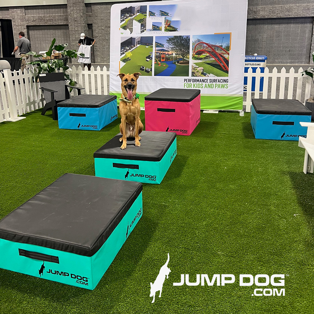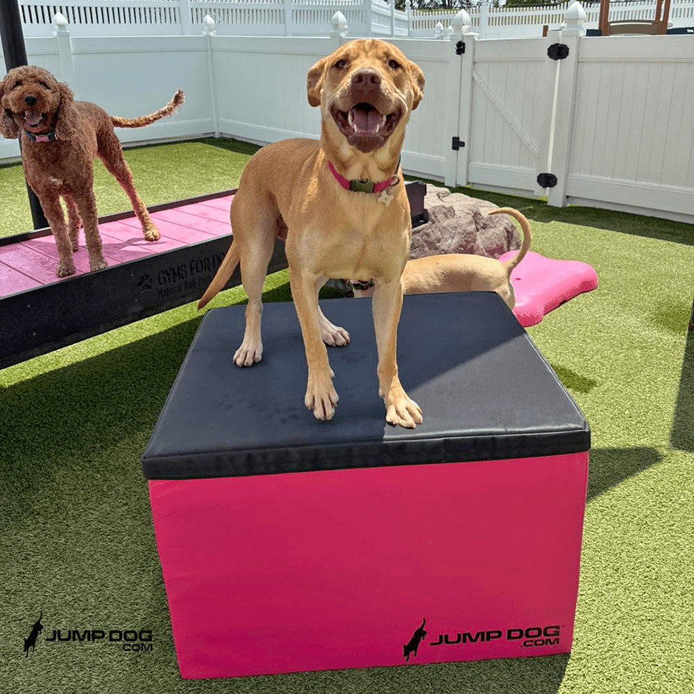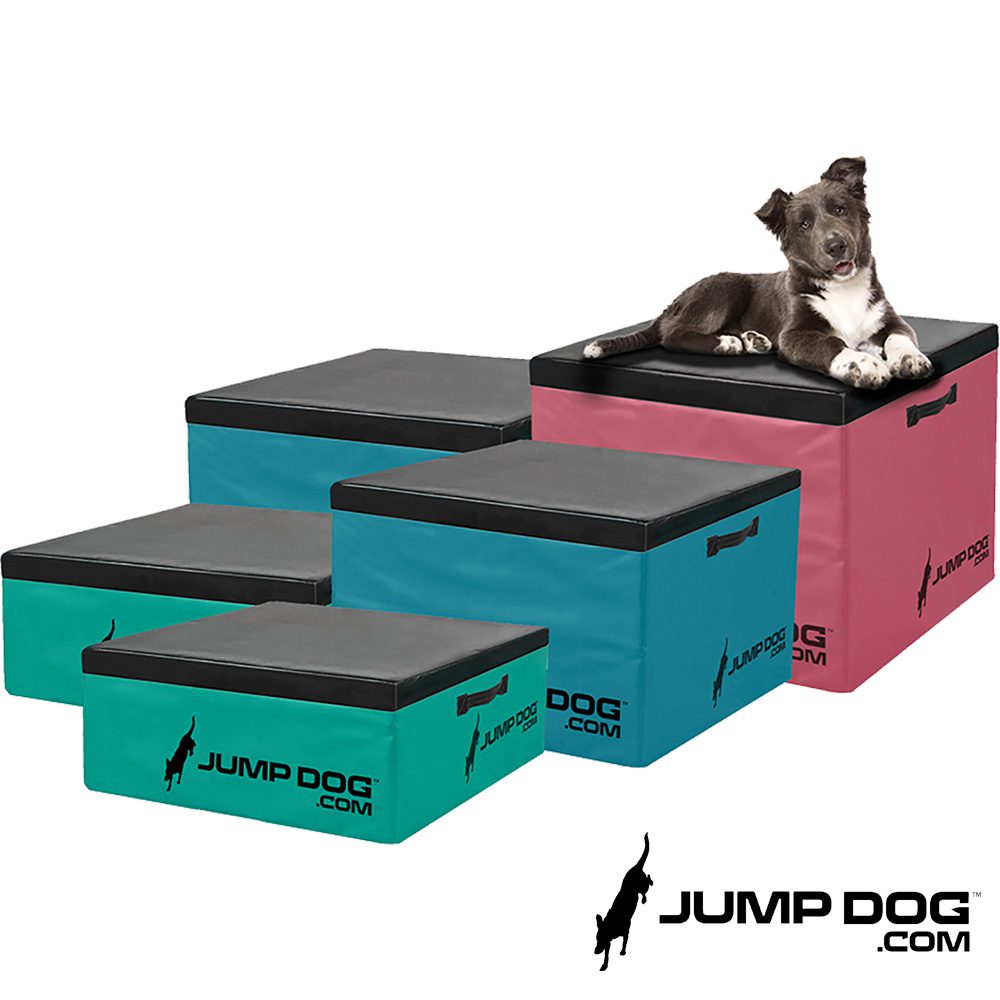 Jump Dog Jump Training Agility Box Set includes 5 boxes of cushioned foam boxes with high-performance tread surfacing. With increasing heights for dog agility and jump training, this set provides all the tools needed for agility jump training that can allow for varying degrees of difficulty for dogs – from beginner to athlete! Perfect for doggie daycares, training facilities, or indoor dog parks. Lightweight & Mobile.