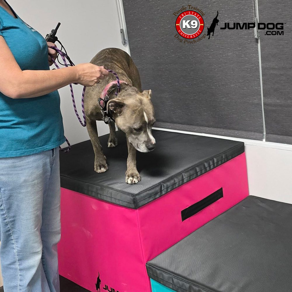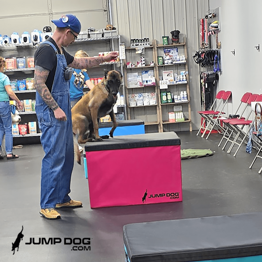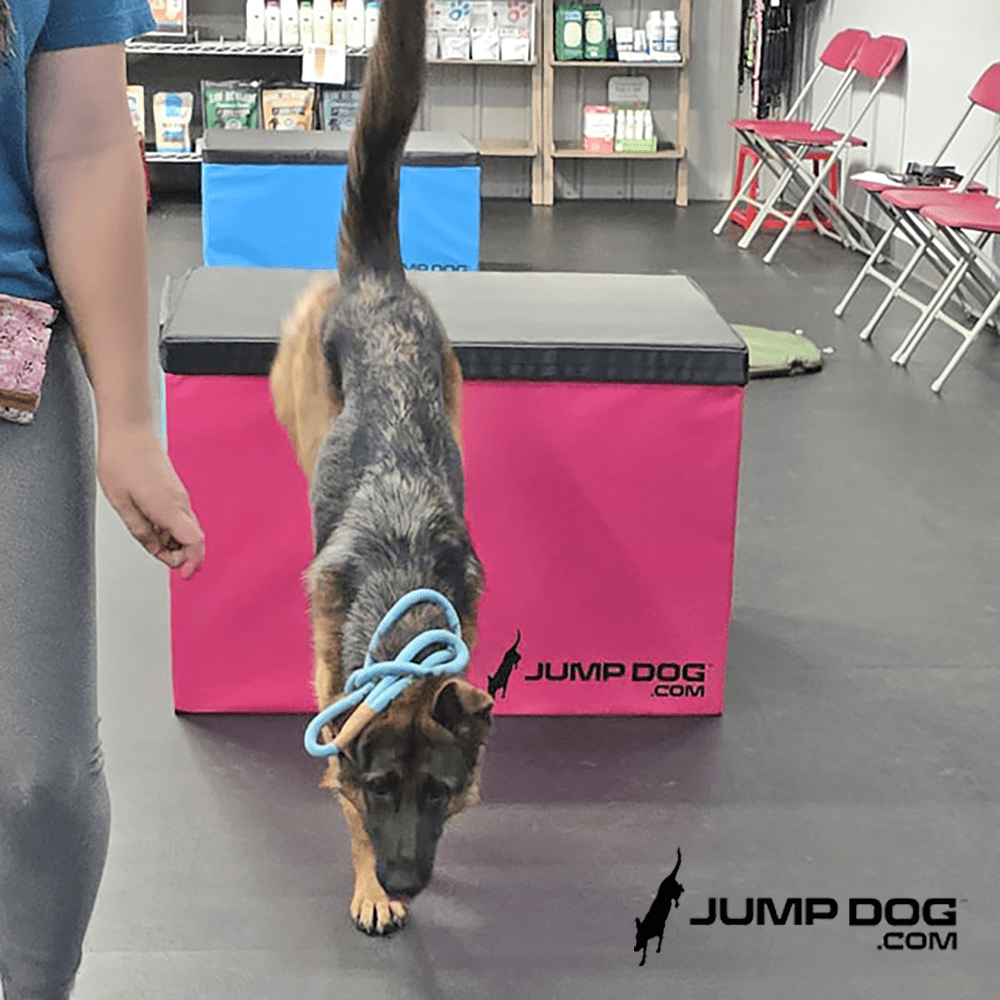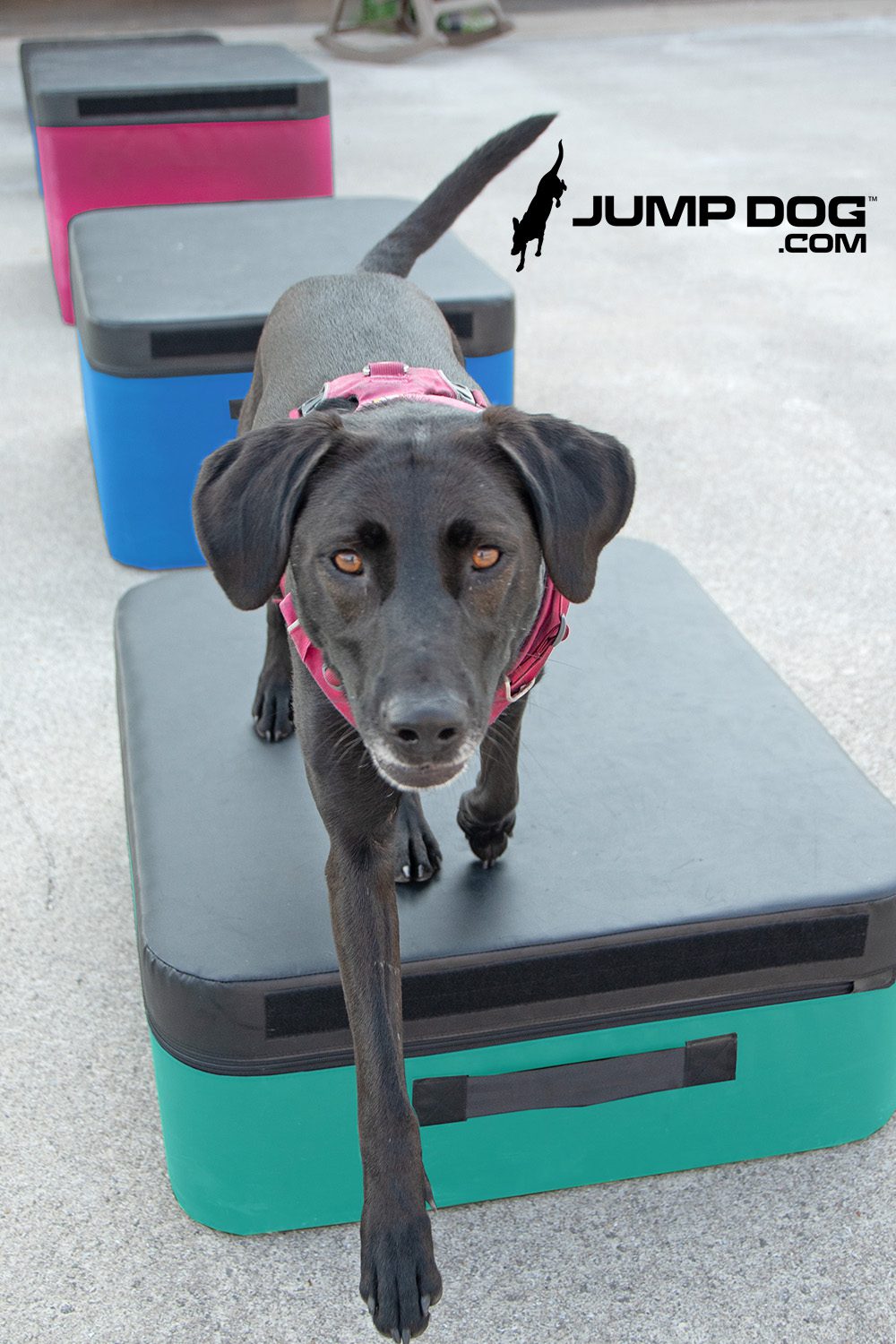 Jump Dog Jump Training Agility Box Set includes 5 boxes of cushioned foam boxes with high-performance tread surfacing. With increasing heights for dog agility and jump training, this set provides all the tools needed for agility jump training that can allow for varying degrees of difficulty for dogs – from beginner to athlete! Perfect for doggie daycares, training facilities, or indoor dog parks. Lightweight & Mobile.
